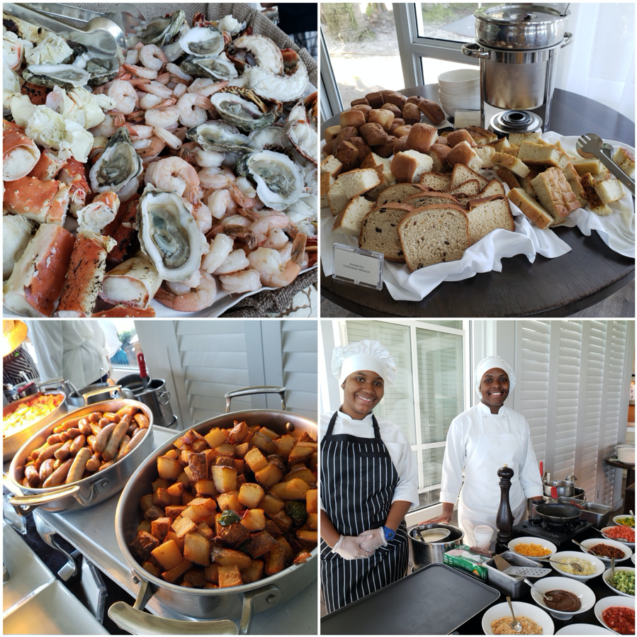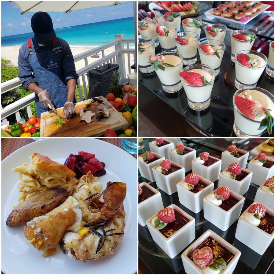 The hot selections include Bahamian classics like butter glazed lobster, meaty, fresh pan-seared grouper, peas and rice, macaroni and cheese, and fried plantains, just to name a few. And, fresh off the seaside grill, diners can enjoy more fresh seafood and fire-grilled steak.