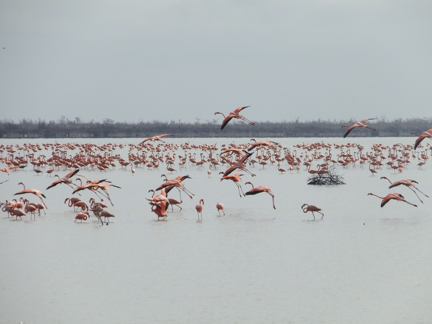 Flamingoes taking off, Bahamas National Trust Parks242 blog