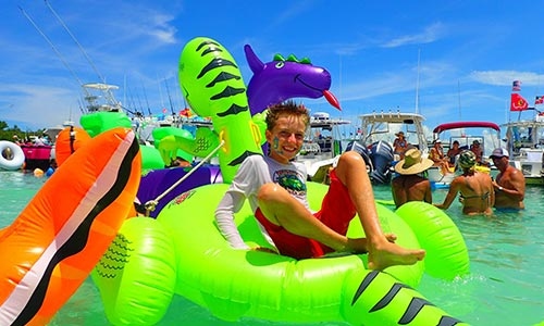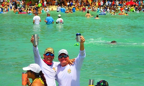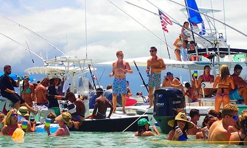 Three years later, although the name has changed, the vibe remains the same. Boats are still filled to capacity, starting their journey to Fiddle Cay as early as 6 a.m. Record numbers of hamburgers and margaritas are still given out for free and the boats still line up around the shallow waters allowing partygoers to essentially boat hop.