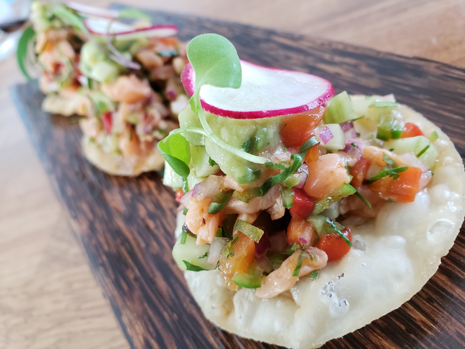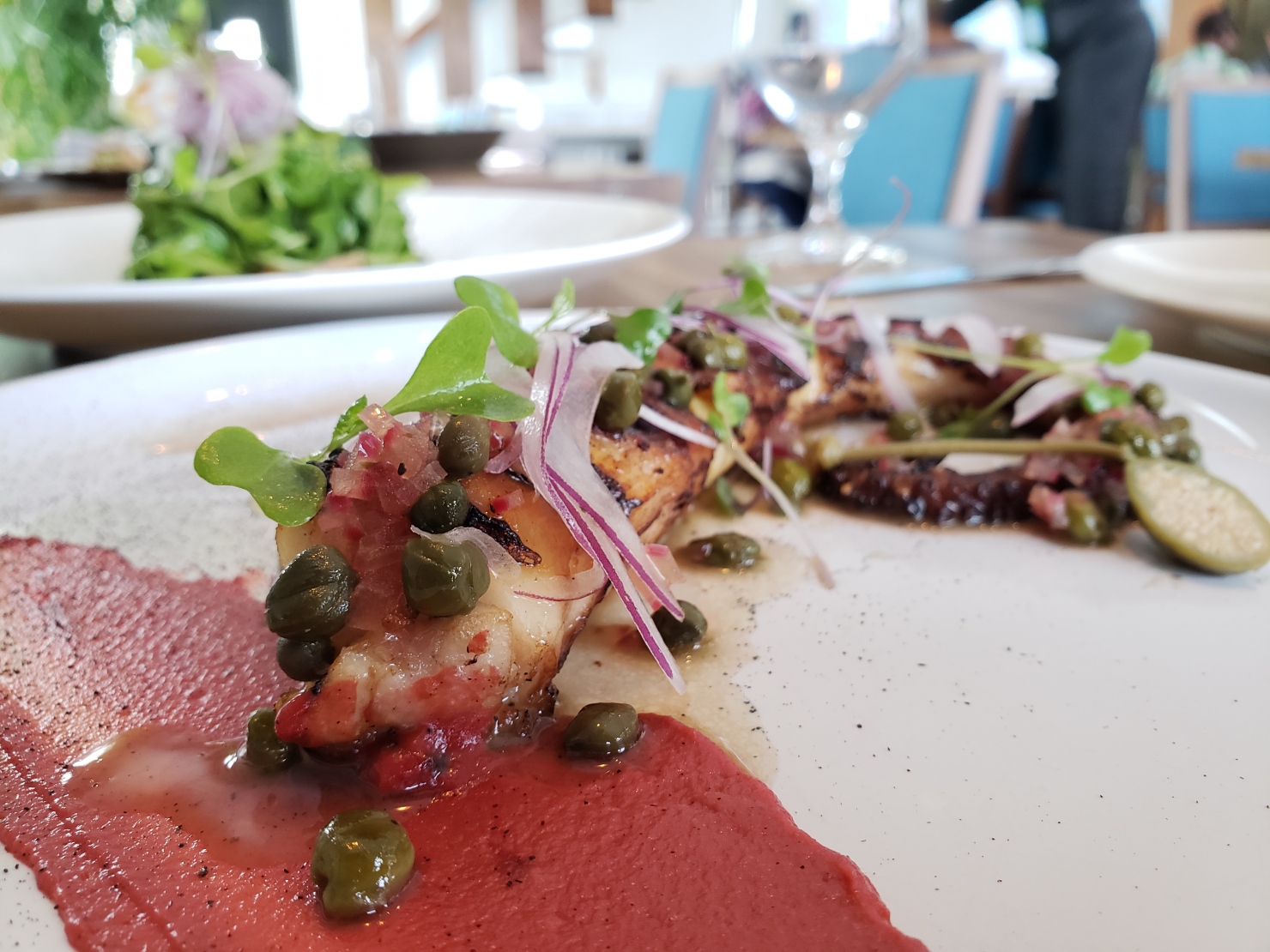 A few menu highlights include their citrus infused Salmon Totopos, which sits atop a light wafer, Grilled Calamari served with a spicy mango sauce bursting with flavor from fresh, locally grown mangoes, and the Octopus Ravi, which is a crispy, yet tender dumpling served with fresh pineapple and a sweet glaze.