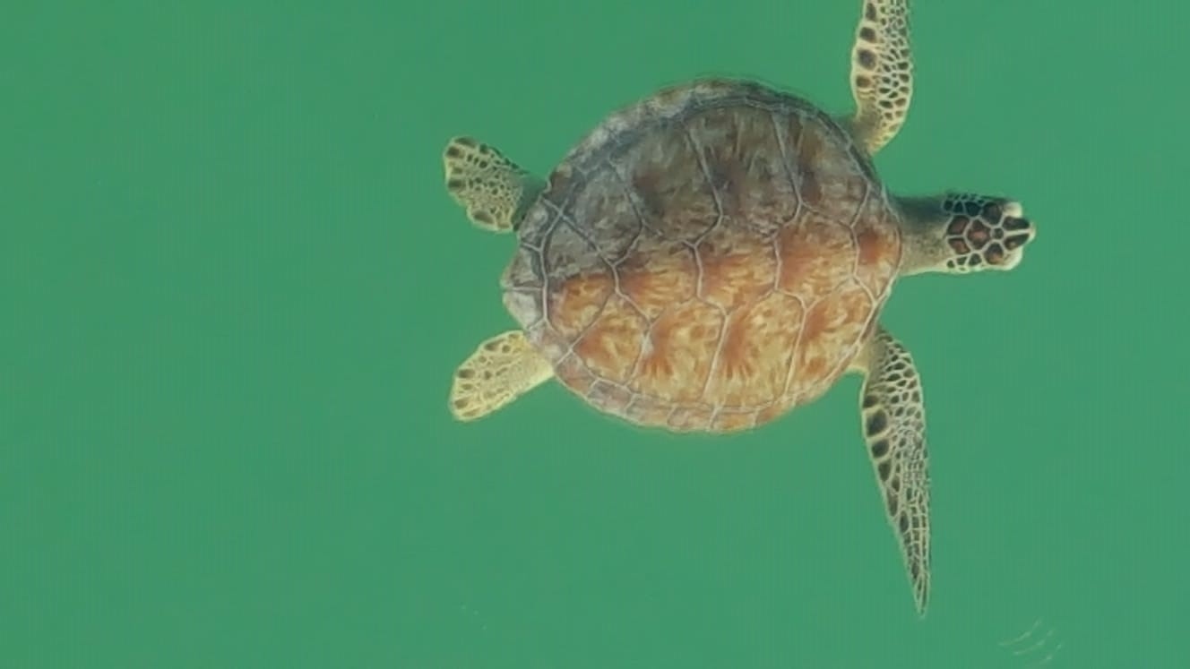 In diesem Moment beginnt Sarah, meine Führerin für grüne Schildkröten, Tintenfische zu verteilen und erklärt, dass diese verwendet werden sollen, um die Schildkröten anzulocken, da Schildkröten Tintenfische lieben. Jesse, Sarahs Ehemann, gibt eine kurze Demonstration darüber, wie der Tintenfisch verwendet wird, um die Schildkröten hereinzubringen, mit einer ebenso fairen Warnung, dass Schildkröten nicht völlig harmlos sind. Während der Demonstration rutschen Tintenfischstücke von aufgeregten Kindern und Erwachsenen ins Wasser und innerhalb weniger Minuten sind wir von grünen Schildkröten umgeben.