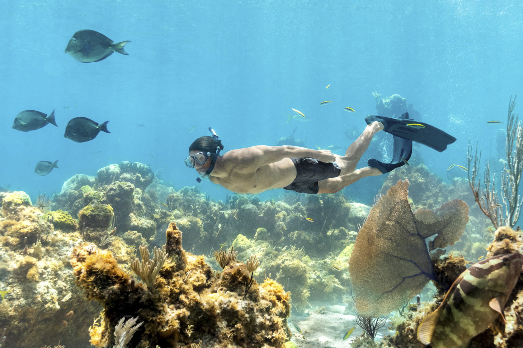 Fünf Meilen weißer Sandstrand und die blühenden Korallenriffe, die ihn umgeben, machen Great Guana Cay zu einem beliebten Ziel für Tagesausflügler, Schnorchler und Meeresschildkröten.